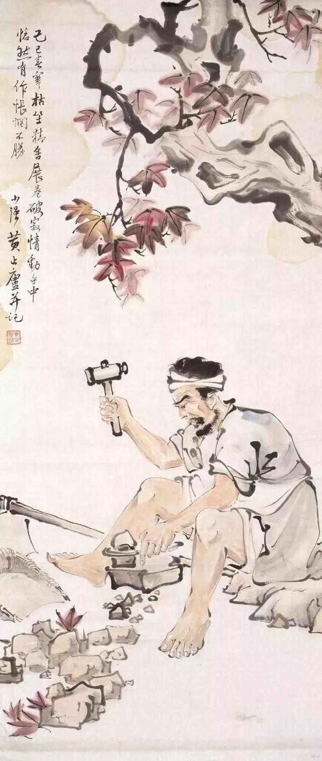 在岭南高氏众弟子中,黄少强特性忧郁,与东谈主甚少交游,高剑父称他为“特立独行之士”。他虽生于膏腴之家,不愁衣食,但却终年囚首丧面,头绪深锁,似有苦愁。他的内心深处藏有悲天悯东谈主之愿,想法从街头估客挖掘推行题材,将东谈主物的情谊、形象和碰到引入国画之境。
