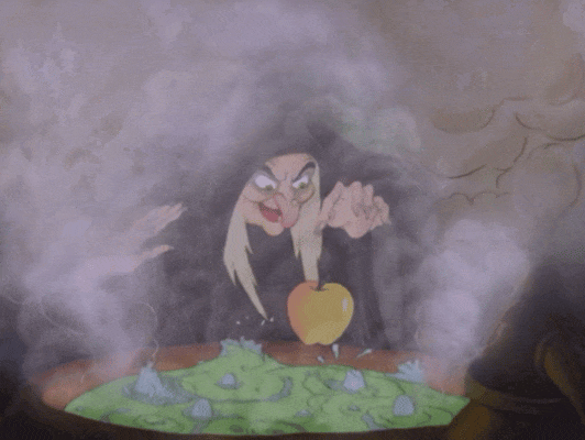 早在1937年的动画电影《白雪公主和七个小矮东说念主》中,狂暴王后的毒苹果便是由绿色的毒液浸泡淬真金不怕火而成。她将饱胀的红苹果冉冉浸入绿色的毒液,让剧毒顺着果纹浸透,透彻浸染整颗果实。